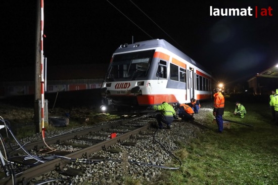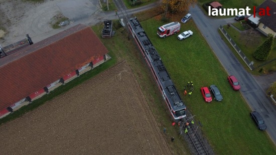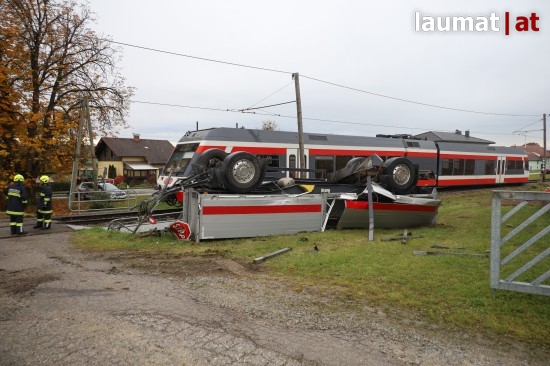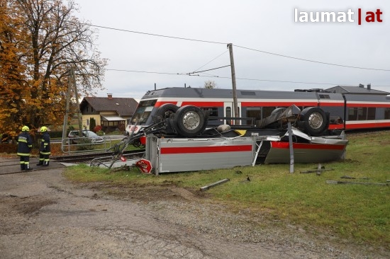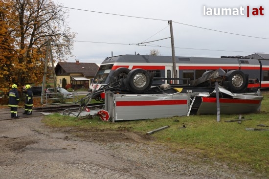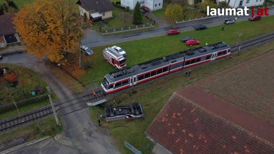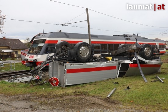 Ein Triebwagen der Linzer Lokalbahn hat auf einem Bahnübergang in der Ortschaft Parzham im Gemeindegebiet von Waizenkirchen einen LKW-Anhänger erfasst. Der LKW-Anhänger überschlug sich, die Lokalbahn ist nach der Kollision teilweise entgleist.
