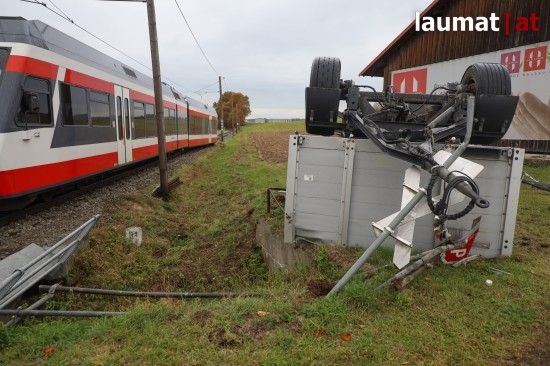 "Ein 25-Jähriger aus Wels war am 02. November 2023 gegen 14:35 Uhr mit seinem LKW auf der Willersdorfer Gemeindestraße Richtung Peuerbach unterwegs. In der Ortschaft Aschach, Gemeinde Waizenkirchen, bog der Mann links zu einer Firmenzufahrt ab und musste dabei eine Gleisanlage überqueren. Dabei dürfte er einen von rechts kommenden Zug übersehen haben. Dieser stieß trotz Vollbremsung gegen den gezogenen Anhänger. Der Anhänger überschlug sich und blieb mit den Rädern nach oben neben dem Gleis liegen. Der Triebwagen wurde durch den Zusammenstoß aus den Gleisen gehoben und kam mit den ersten Rädern neben den Gleisen zum Stillstand. Der 49-jährige Triebwagenführer aus dem Bezirk Grieskirchen klagte über leichte Schmerzen, benötigte aber zunächst keine ärztliche Betreuung", so die Polizei.