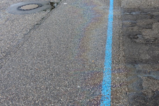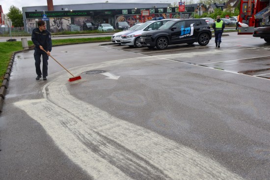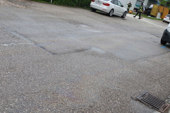 "McÖlspur mit Extra-Bindemittel": Ölspur auf Parkplatz, Tankstelle und im Straßenbereich in Wels-Pernau