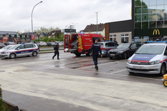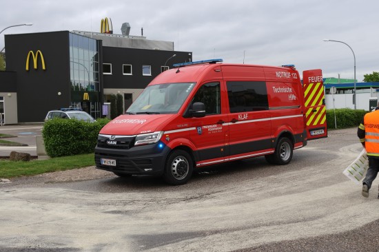 Die Einsatzkräfte wurden zu einem Ölaustritt auf den Parkplatz eines Fastfood-Restaurantes im Welser Stadtteil Pernau alarmiert. Beim Eintreffen war bereits auf der Straße davor sowie in weiterer Folge auch im angrenzenden Tankstellenbereich eine Ölverschmutzung sichtbar. Die Einsatzkräfte trugen Bindemittel auf und stellten Warnschilder auf. Eine Kehrmaschine wurde verständigt.