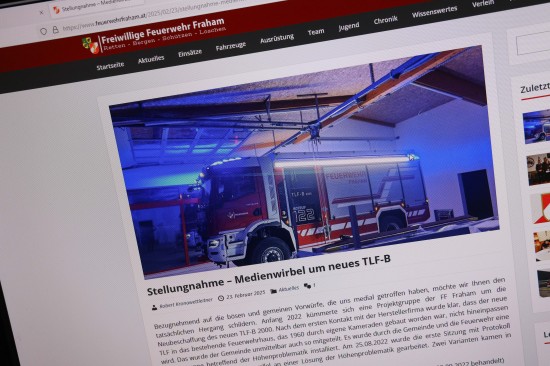 "Die Beschlussfassung über den Ankauf des neuen Tanklöschfahrzeuges wurde in der Gemeinderatssitzung am 24. April 2023 behandelt und beschlossen. Aus den Protokollen der Gemeinderatssitzungen war die Kenntnis der Höhenproblematik bereits acht Monate zuvor bekannt. Daher ist es für uns völlig unerklärlich, dass ein Gemeinderat falsche Informationen an Medienvertreter weitergibt und somit ein schlechtes Licht auf die Feuerwehr, den Gemeinderat und die Gemeinde wirft."