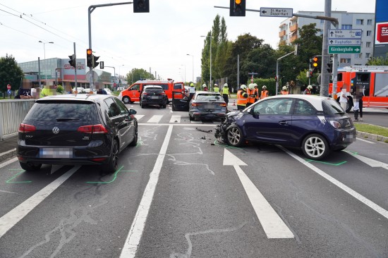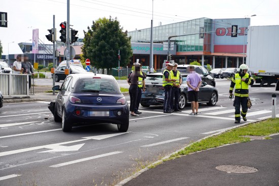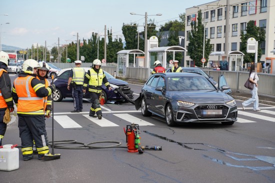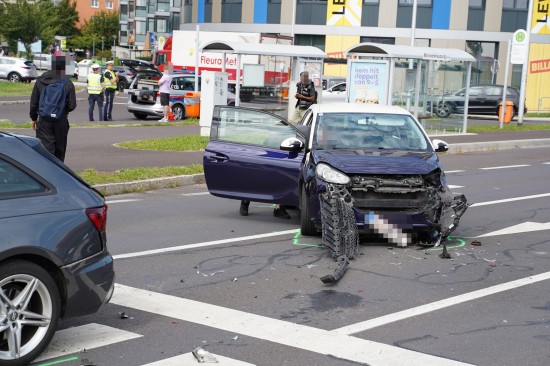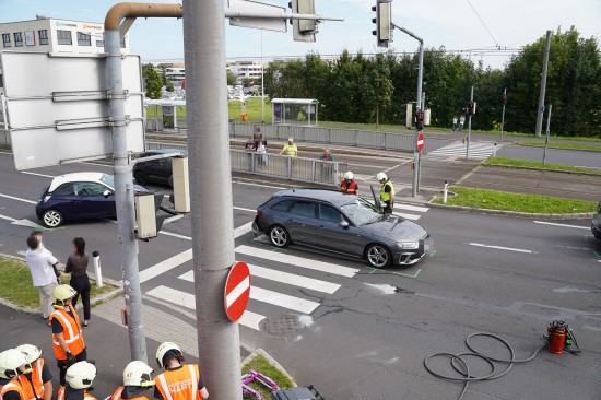 Meixner Kreuzung: Blechsalat und mehrere Leichtverletzte bei Crash mit vier PKW in Leonding
