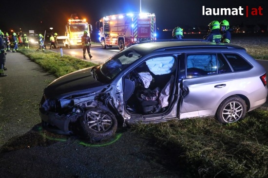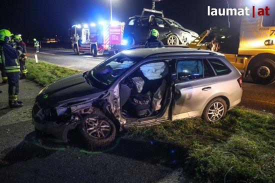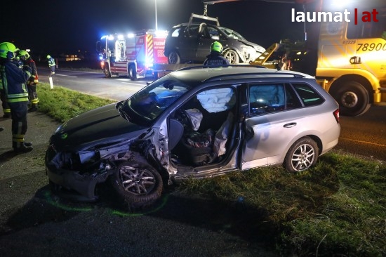 Menschenrettung nach schwerer Kollision zweier Autos auf Kremstalstraße in Ansfelden