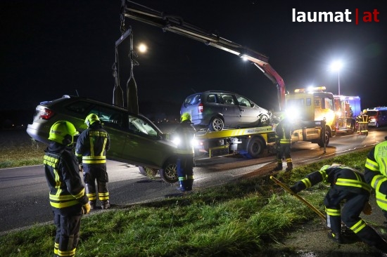 Ersten Angaben zufolge kollidierten auf der B139 Kremstalstraße zwei PKW. Nach dem Unfall waren zwei Personen in einem der Unfallfahrzeuge eingeschlossen, aber zum Glück nicht schwerer eingeklemmt. Die Einsatzkräfte der drei alarmierten Feuerwehren konnten rasch einen Zugang öffnen und die eingeschlossenen Insassen befreien. Nach dem Abschluss der Menschenrettung sowie der polizeilichen Unfallaufnahme unterstützte die Feuerwehr das Abschleppunternehmen bei der Bergung der Unfallfahrzeuge sowie der Straßenreinigung.