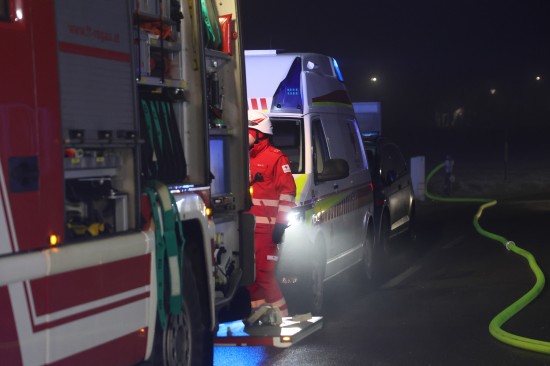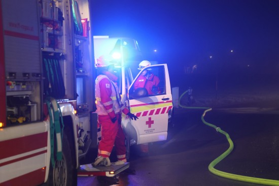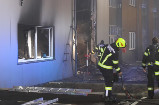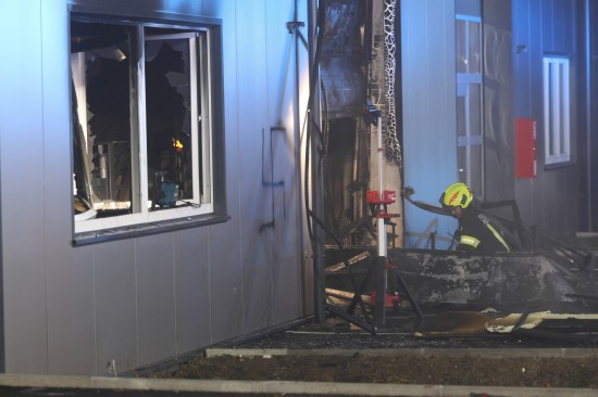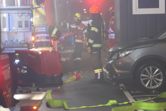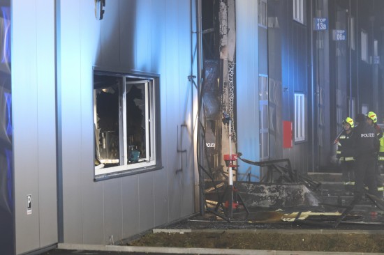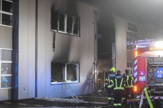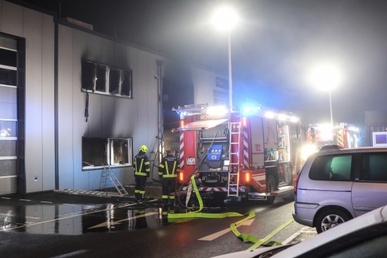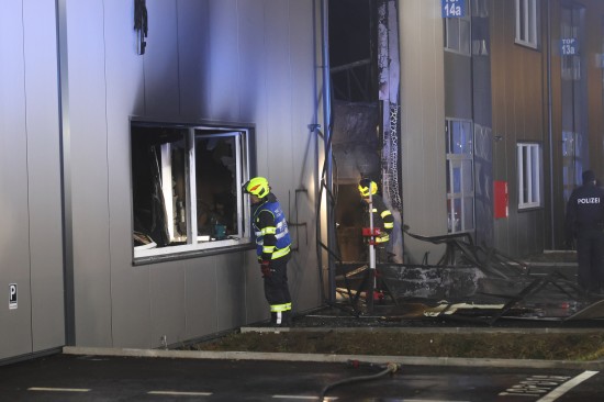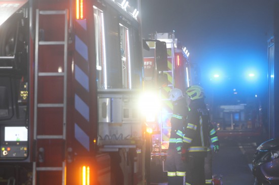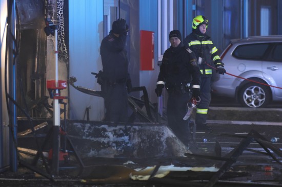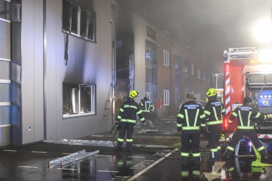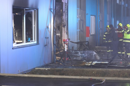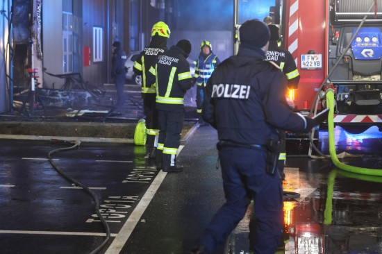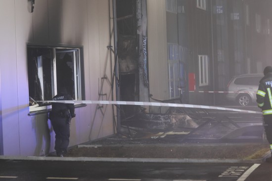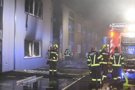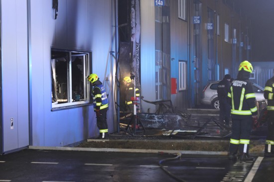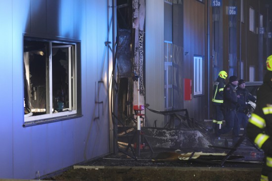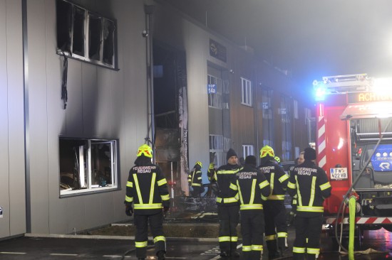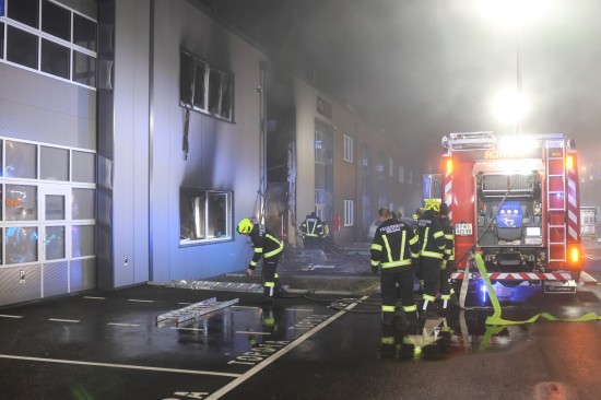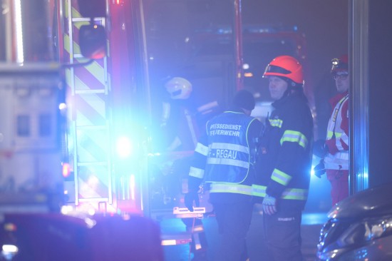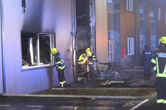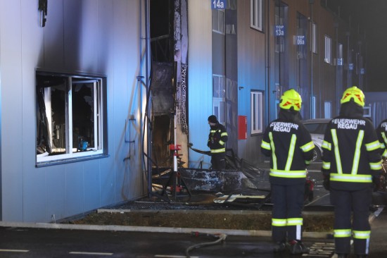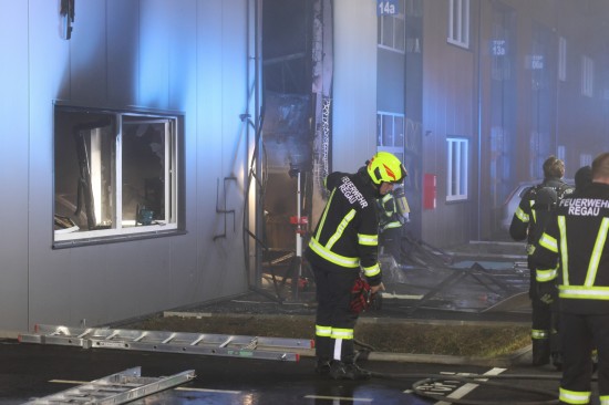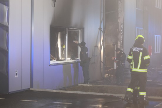 In Regau (Bezirk Vöcklabruck) standen in der Nacht auf Montag zwei Feuerwehren, Rettung und Polizei bei einem Brand in einem Werkstättenpark im Einsatz.