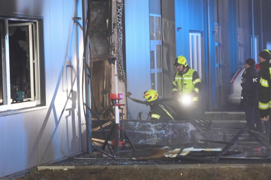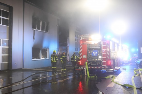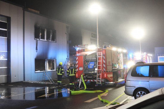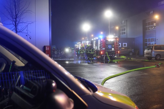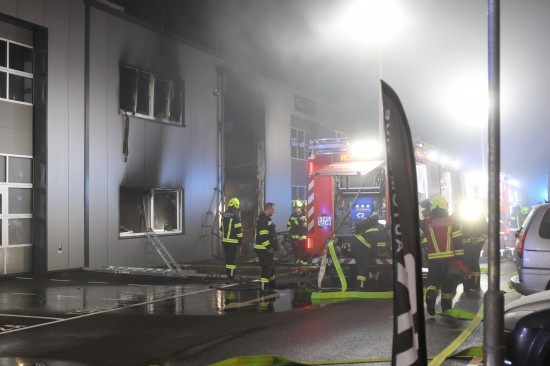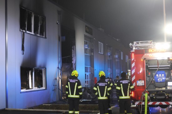 Regau. In Regau (Bezirk Vöcklabruck) standen in der Nacht auf Montag zwei Feuerwehren, Rettung und Polizei bei einem Brand in einem Werkstättenpark im Einsatz.