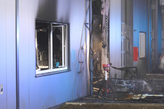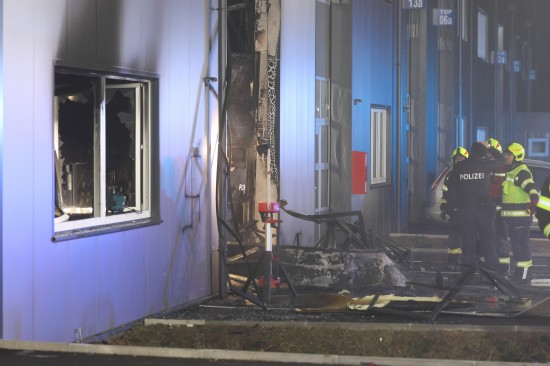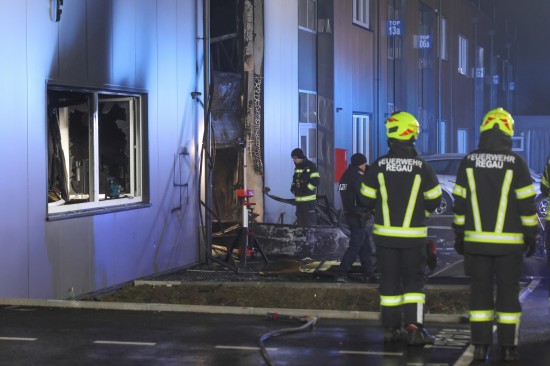 Die Einsatzkräfte der Feuerwehr wurden in der Nacht auf Montag zu einem Brand einer Werkstätte in einem kürzlich neu errichteten Werkstättenpark in Regau alarmiert. Ein Winterdienstfahrer soll den Brand bemerkt und sofort Alarm geschlagen haben. Die betroffene Werkstätte brannte jedoch großteils aus, die Einsatzkräfte der beiden alarmierten Feuerwehren konnten den Brand binnen kurzer Zeit unter Kontrolle bringen. Den Einsatzkräften sofort ins Auge gestochen ist auch ein direkt am Brandort im Fassadenbereich aufgesprühtes Hakenkreuz. Die Polizei hat die Ermittlungen aufgenommen, der Tatort wurde polizeilich gesperrt.