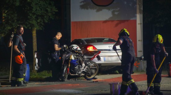 "Ein 49-jähriger deutscher Staatsangehöriger aus dem Bezirk Schärding fuhr am Abend des 18. Juni 2024 mit dem PKW seiner Lebensgefährtin, die sich am Beifahrersitz befand, von Deutschland kommend Richtung Moosdorf. Als die beiden gegen 20:20 Uhr in Braunau am Inn zu einem Imbissstand abbiegen wollten, kam es zur Kollision mit einem Motorradfahrer. Der 28-jährige Syrer stürzte von seinem Motorrad und wurde gegen einen Betonsockel geschleudert. Er verstarb trotz Reanimationsversuchen noch an der Unfallstelle. Der 49-Jährige und seine 44-jährige Beifahrerin wurden unbestimmten Grades verletzt in das Krankenhaus St. Josef Braunau eingeliefert und ambulant behandelt. Ein Drogentest beim PKW-Lenker verlief positiv auf Methamphetamin und Amphetamin und die klinische Untersuchung ergab die Fahruntauglichkeit. Bei den Ermittlungen stellte sich auch heraus, dass dem 49-Jährigen die Lenkberechtigung bereits vor Jahren wegen Suchtgiftmissbrauchs entzogen worden war", berichtet die Polizei.