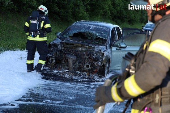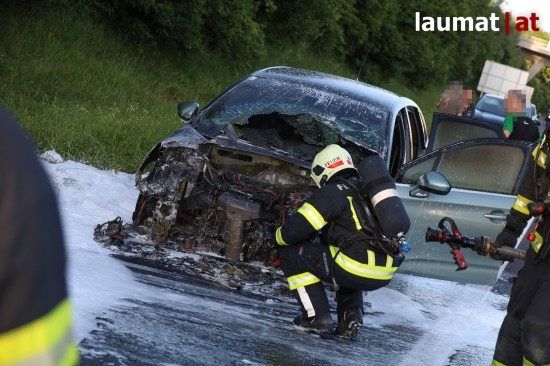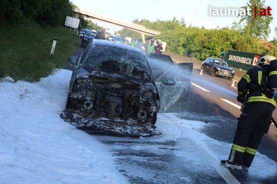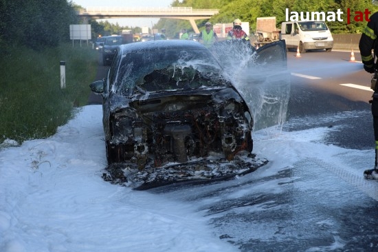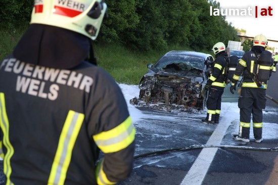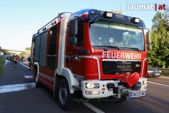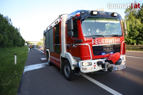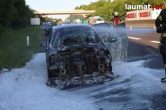 In Vollbrand stand Dienstagabend der Motorraum eines PKW auf der A8 Innkreisautobahn, bei Wels-Oberthan, als die Einsatzkräfte der Feuerwehr am Einsatzort eingetroffen sind.