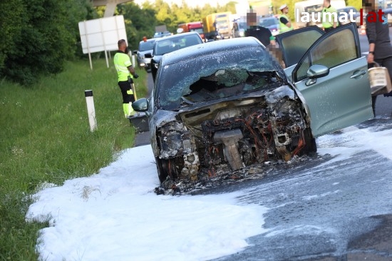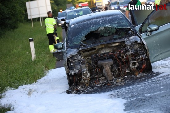 Motorraum eines Autos auf Innkreisautobahn bei Wels-Oberthan in Vollbrand
