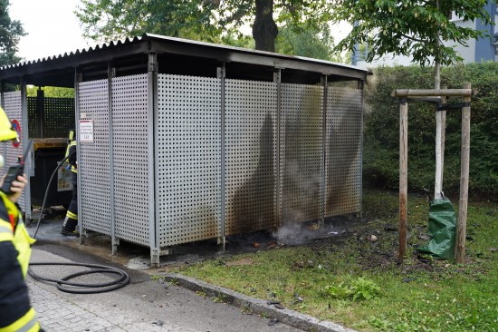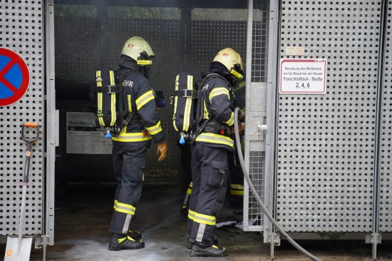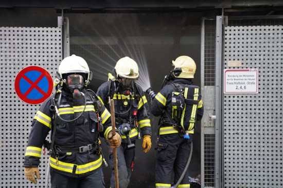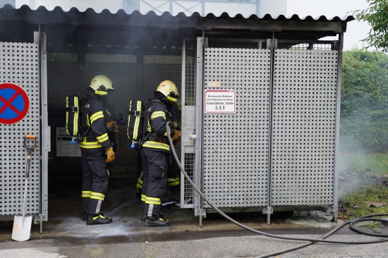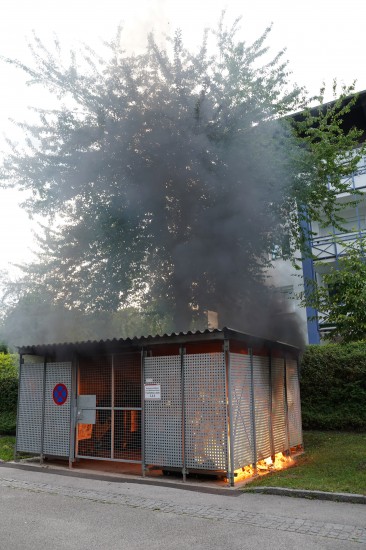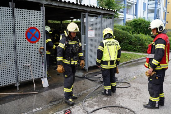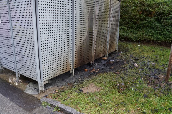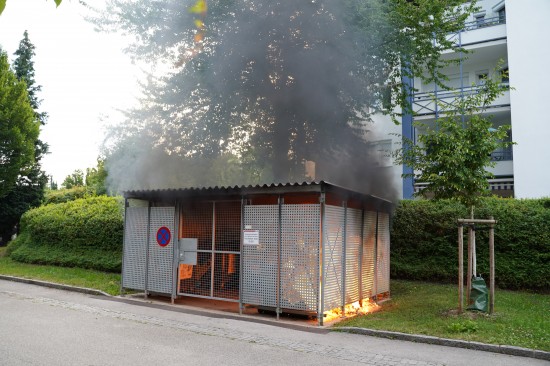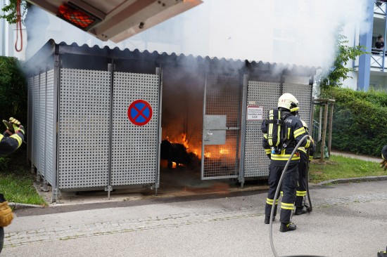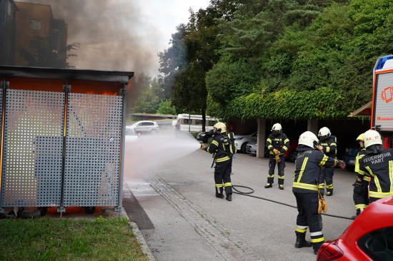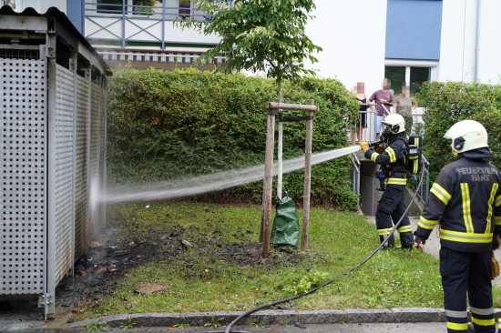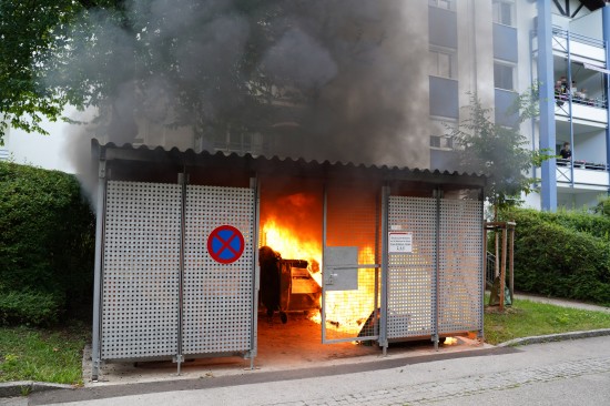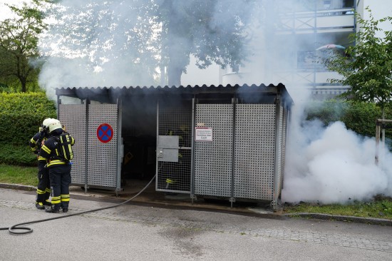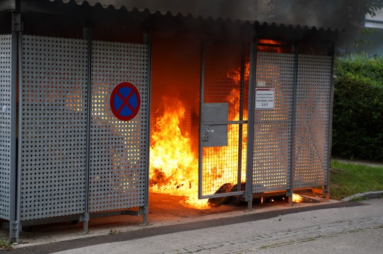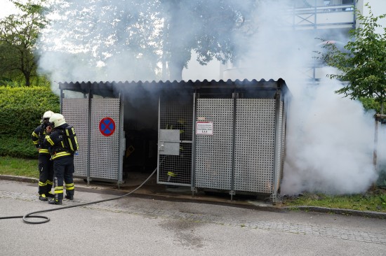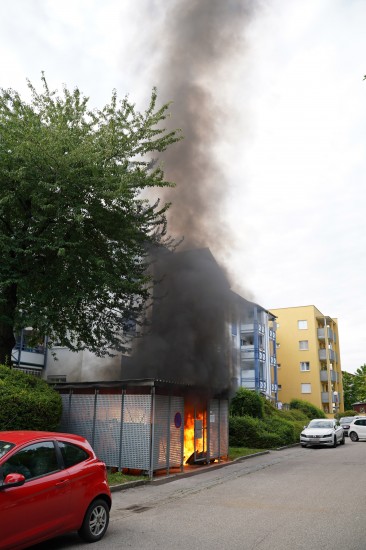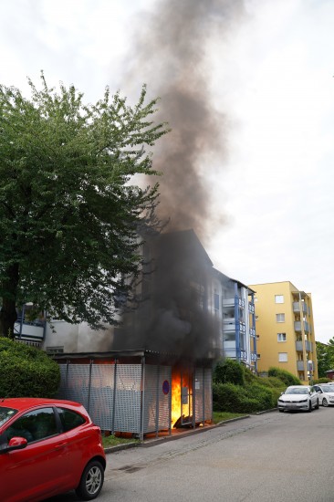 Müllinsel bei einer Wohnanlage in Leonding nahezu in Vollbrand