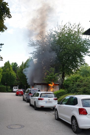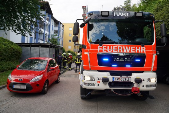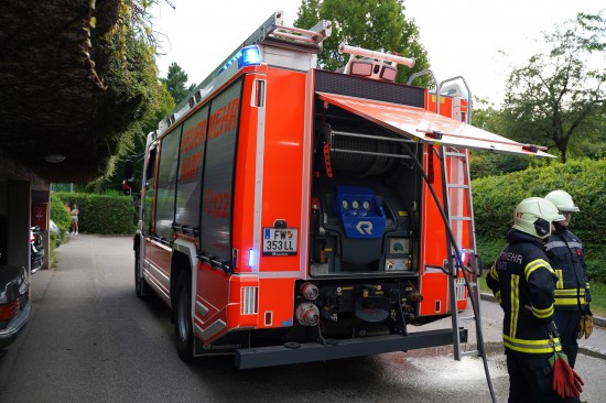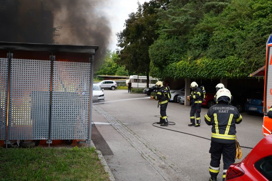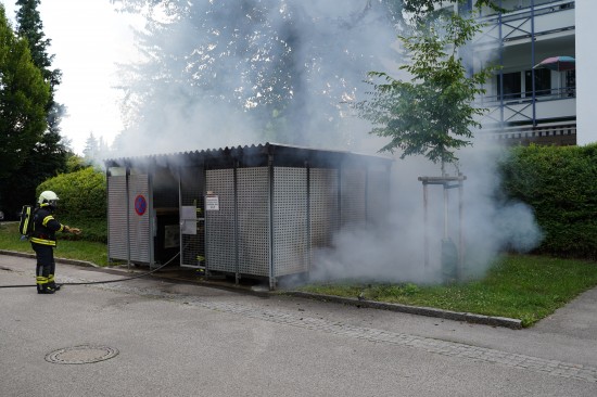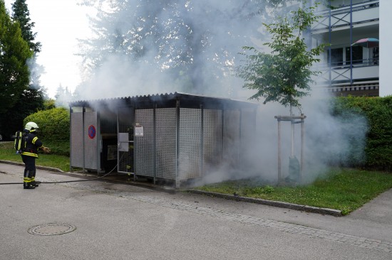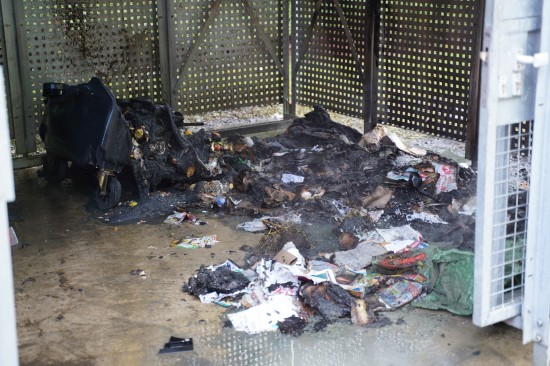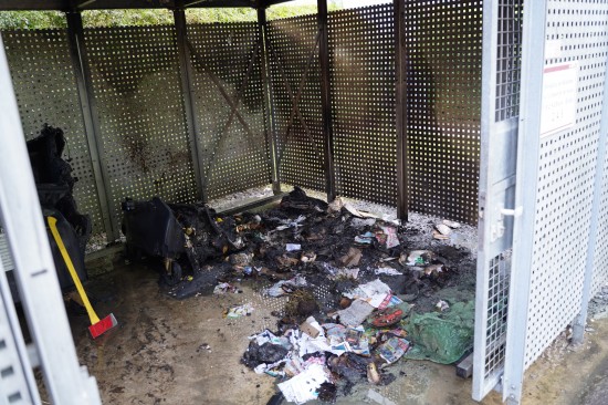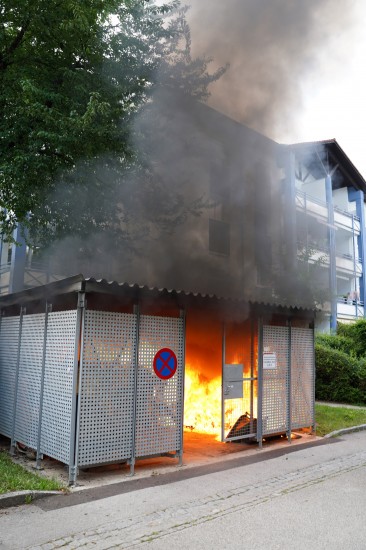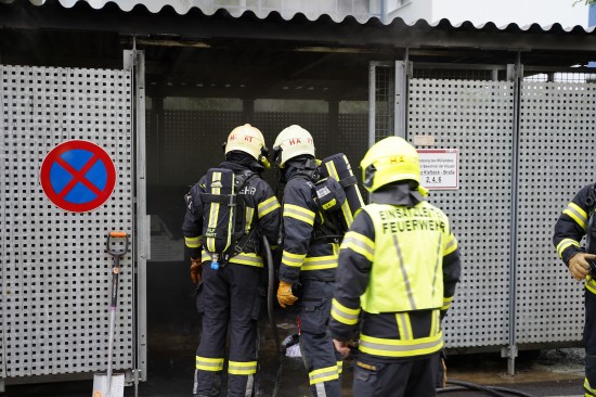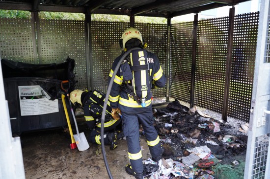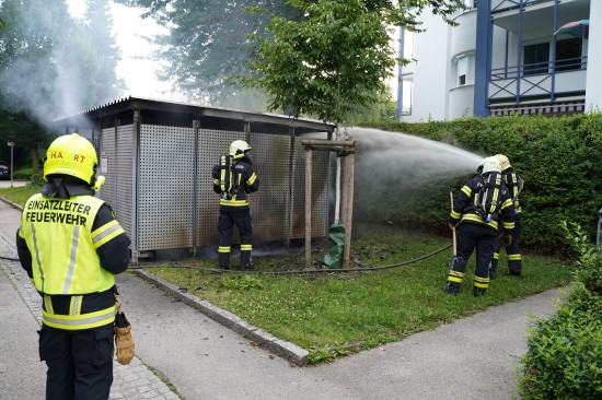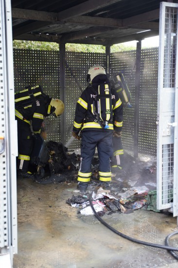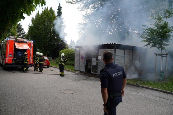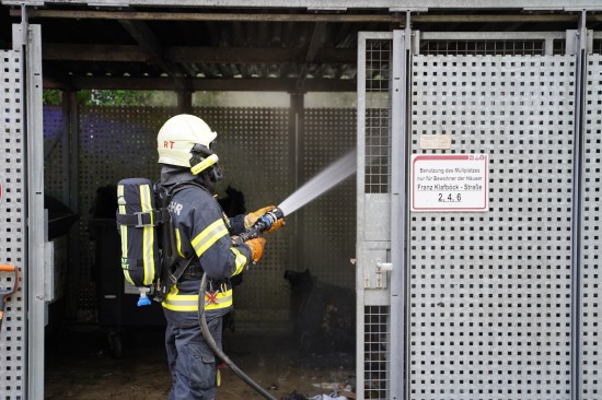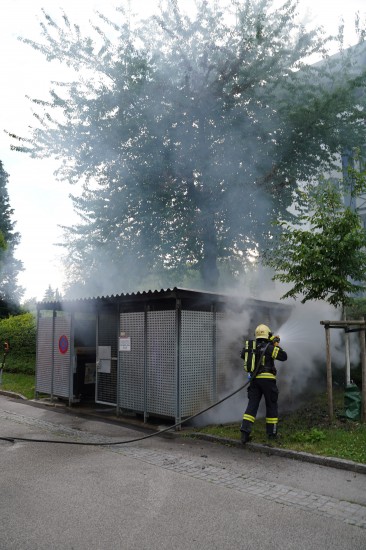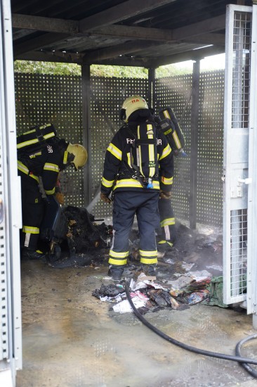 Müllinsel bei einer Wohnanlage in Leonding nahezu in Vollbrand