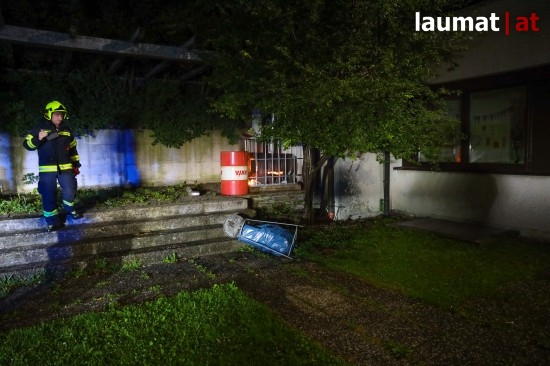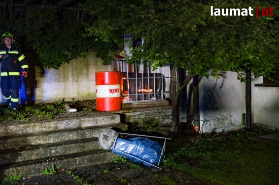 Der Inhalt einer Konstruktion aus alten Fässern beziehungsweise einem Ofenrohr brannte aus bisher unbekannter Ursache. Die Feuerwehr löschte das Feuer, ein Übergreifen auf eine Holzkonstruktion an der Rückseite des Gebäudes konnte erfolgreich verhindert werden. Im Zuge der polizeilichen Aufnahme wurde zudem eine aufgebrochene Zeitungskasse im Nahbereich sichergestellt.