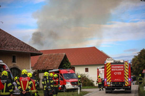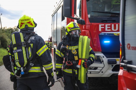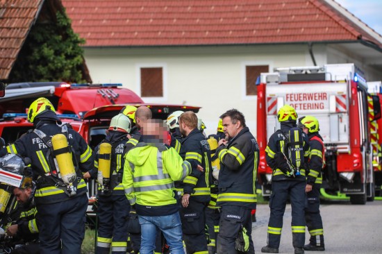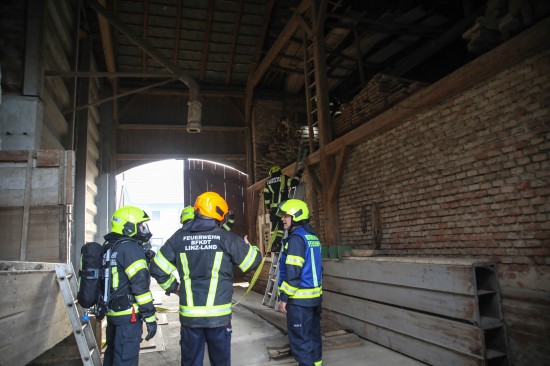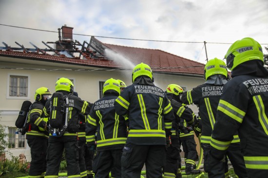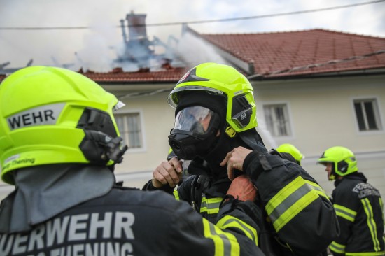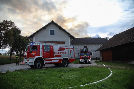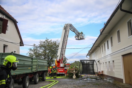 Neun Feuerwehren bei Dachstuhlbrand auf einem Bauernhof in Kirchberg-Thening im Einsatz