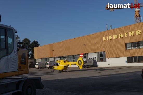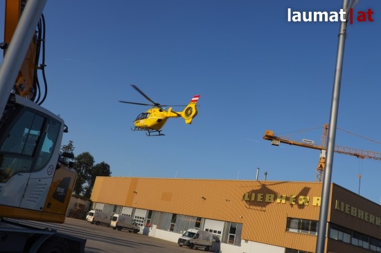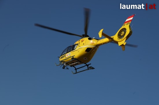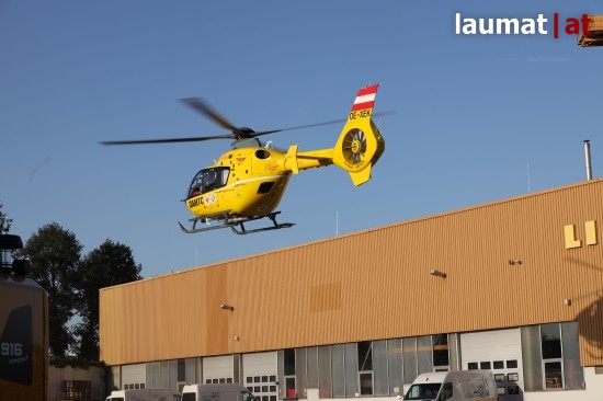 Notarzthubschrauber bei Verkehrsunfall mit Seniorenmobil in Wels-Pernau im Einsatz