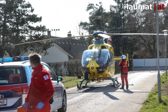 Notarzthubschrauber in Marchtrenk nach internem Notfall im Einsatz