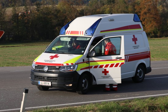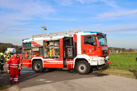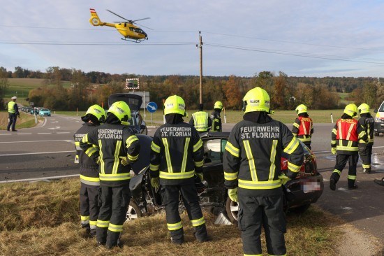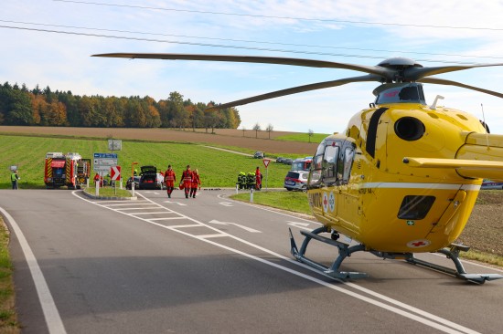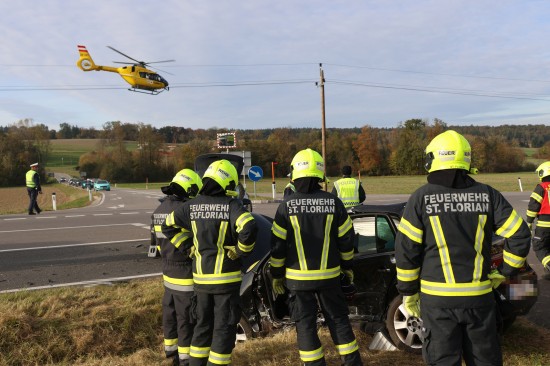 Notarzthubschrauber nach schwerem Kreuzungscrash mit vier Verletzten bei St. Florian im Einsatz