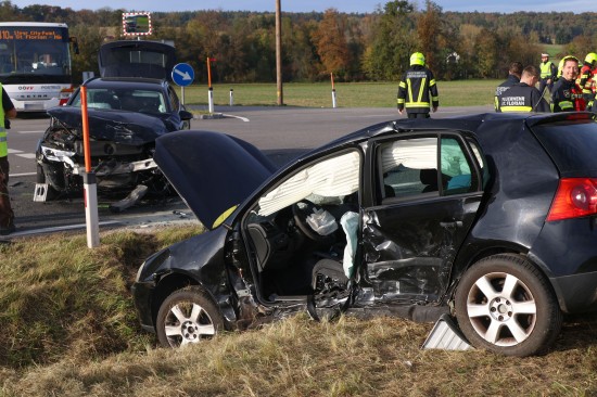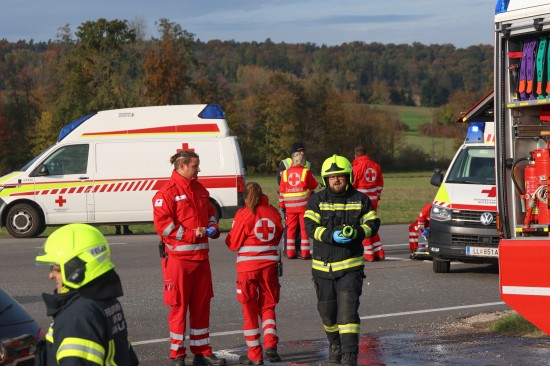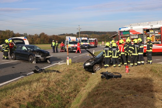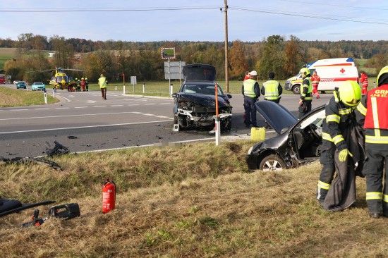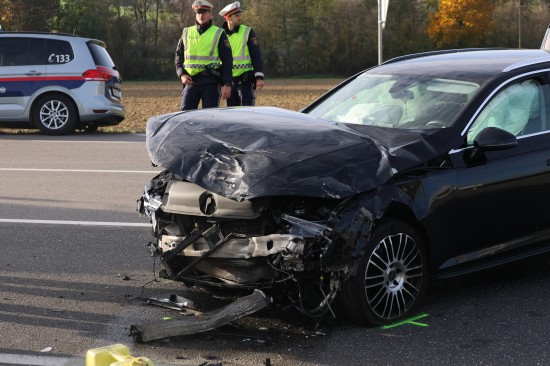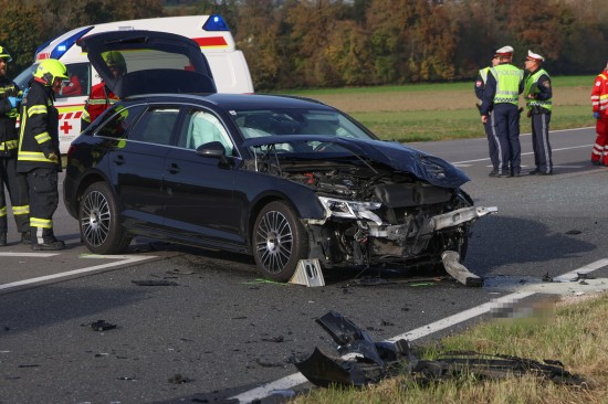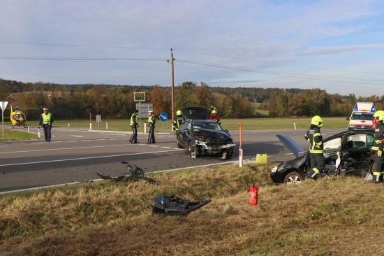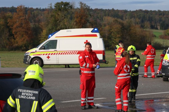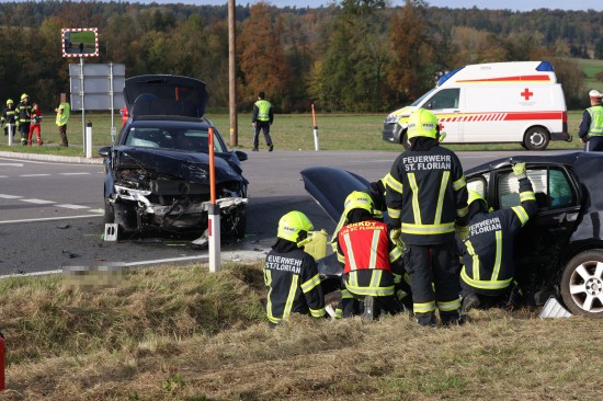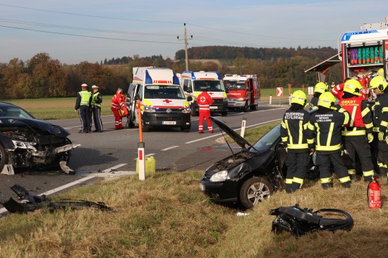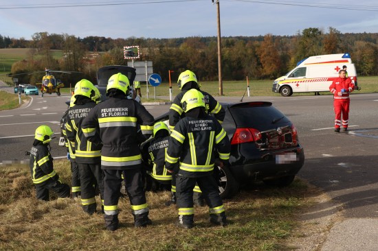 "Zu einem Verkehrsunfall mit vier Verletzten kam es am 20. Oktober 2025 gegen 15:30 Uhr im Gemeindegebiet von St. Florian. Eine 29-jährige Autofahrerin aus dem Bezirk Linz-Land lenkte ihren PKW auf der L564 Wolferner Straße aus Richtung Linz kommend zur Kreuzung mit der L1374 St.-Marien-Straße. Am Beifahrersitz fuhr ihre 63-jährige Mutter aus Rumänien, sowie ihr 3-jähriger Sohn mit, der hinter ihr in einem Kindersitz untergebracht war. Zur gleichen Zeit lenkte ein 58-jähriger Autofahrer aus dem Bezirk Linz-Land seinen PKW auf der L1374 St.-Marien-Straße von St. Florian kommend in Richtung zur Kreuzung mit der L564 Wolferner Straße. Unmittelbar bevor der 58-Jährige den Kreuzungsbereich erreichte, fuhr die 29-Jährige in die L1374 St.-Marien-Straße ein. Der 58-Jährige dürfte noch kurz einen Bremsversuch eingeleitet haben, konnte aber in Folge einen Zusammenstoß nicht mehr vermeiden, worauf er frontal gegen die Fahrerseite des PKW der 29-jährigen Lenkerin kollidierte. Das Fahrzeug der 29-Jährigen drehte sich um die eigene Achse und wurde in einen dortigen Graben gestoßen. Die Lenkerin wurde dabei im Fahrzeug eingeklemmt und musste durch die Einsatzkräfte der Freiwilligen Feuerwehr befreit werden. Die weiteren Beteiligten konnten selbstständig aus dem Fahrzeug aussteigen. Die 29-Jährige wurde mit dem Notarzthubschrauber Christophorus 10, sowie ihre Angehörigen mit Verletzungen unbestimmten Grades ins Kepler Universitätsklinikum Linz gebracht. Der 58-jährige Lenker wurde ebenfalls mit Verletzungen unbestimmten Grades ins UKH Linz gebracht."