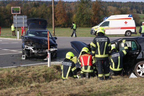 St. Florian. Ein schwerer Verkehrsunfall zwischen zwei PKW hat sich Montagnachmittag in einem Kreuzungsbereich im Gemeindegebiet von St. Florian (Bezirk Linz-Land) ereignet.