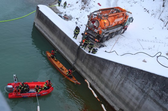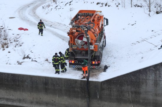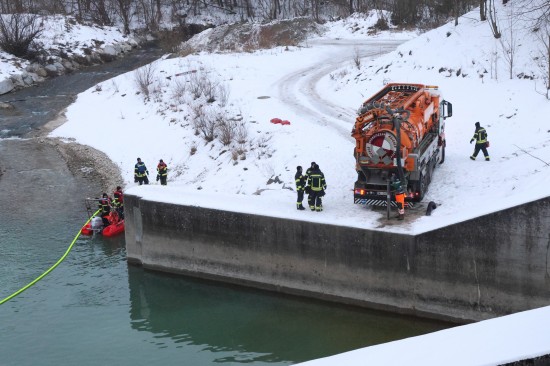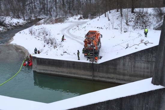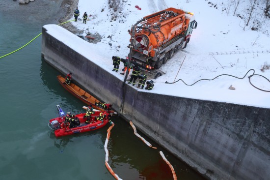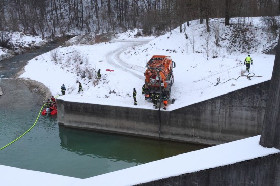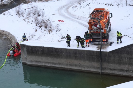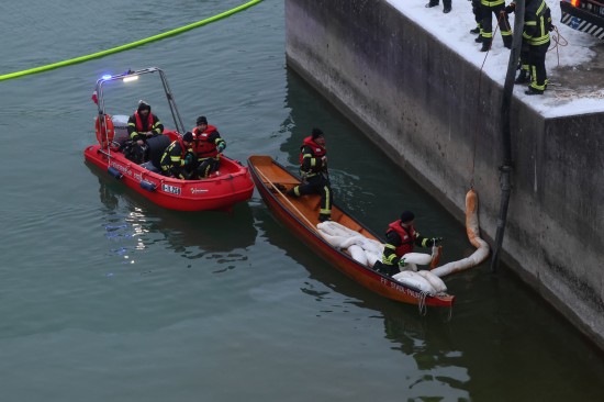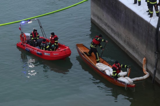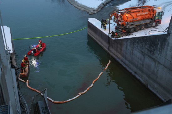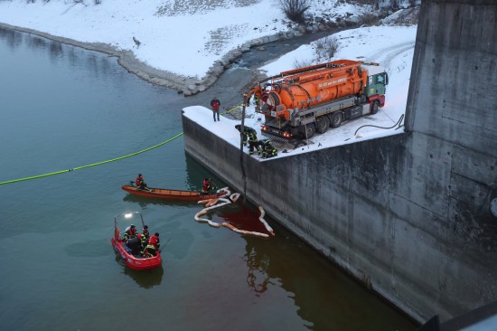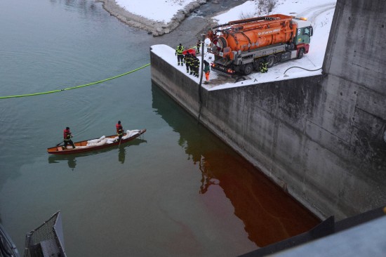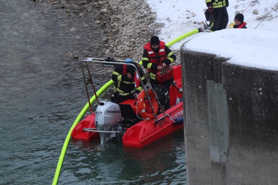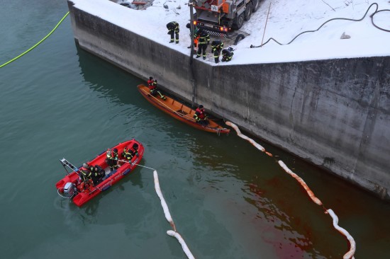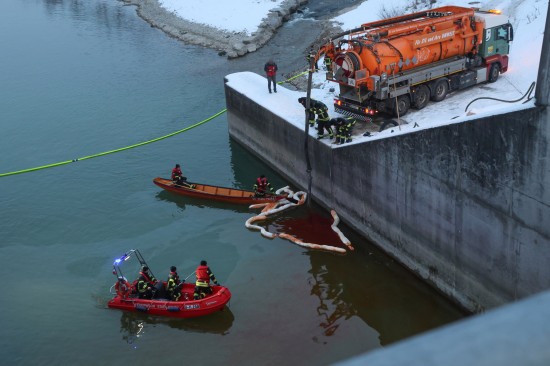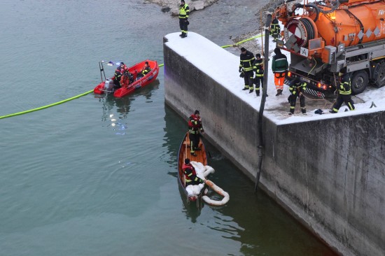 Einen langwierigen Einsatz bei frostigen Temperaturen hatten die Einsatzkräfte der Feuerwehr am Samstagnachmittag in Lambach (Bezirk Wels-Land) zu bewältigen. Ein größerer Ölaustritt in der Traun war der Grund.