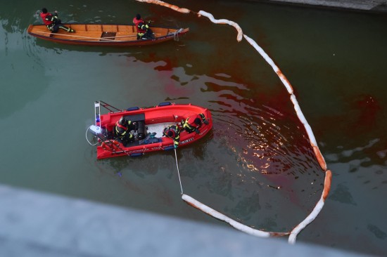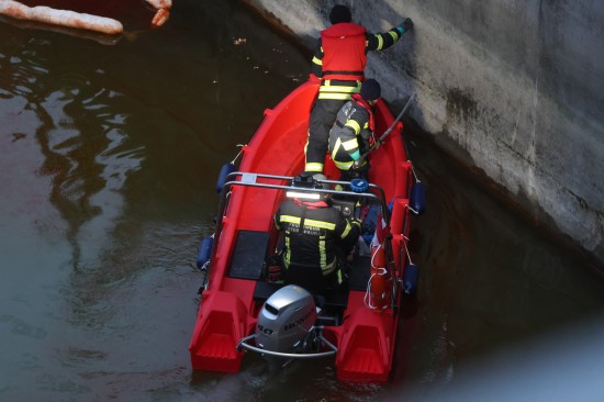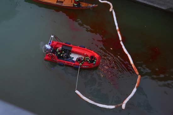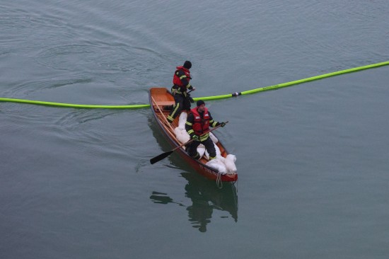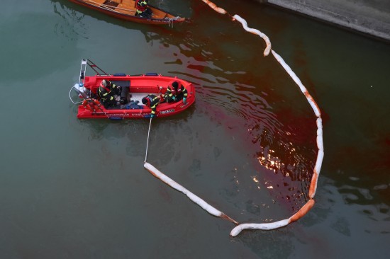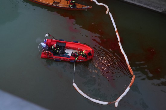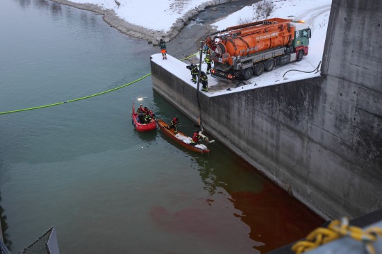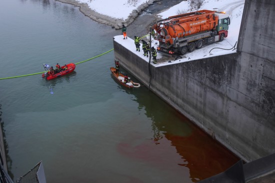 Die Einsatzkräfte der Feuerwehr wurden am Samstagvormittag mit dem Einsatzstichwort "Ölaustritt Gewässer" an die Traun alarmiert. Vor Ort stellte sich dann heraus, dass im Kraftwerksbereich der Nachbargemeinde - im Gemeindegebiet von Lambach - unter einem Wehrfeld eine stark rote Färbung der Traun wahrzunehmen war, was auf einen größeren Ölaustritt hinwies. Kräfte der Polizei nahmen Wasserproben, zudem wurden Behördenvertreter an den Einsatzort geholt. Die Feuerwehr errichtete als Erstmaßnahme eine Ölsperre. Nach umfangreichen Beratungen wurde entschieden, einen Saugwagen anzufordern und mit einer schwimmenden Ölsperre, den Ölfilm sozusagen aus dem betroffenen Bereich zu fischen und zum Saugwagen am Uferbereich hinzuziehen. Dort wurde der Ölfilm dann abgesaugt. Die Arbeiten dauerten bis in die Abendstunden hinein an.