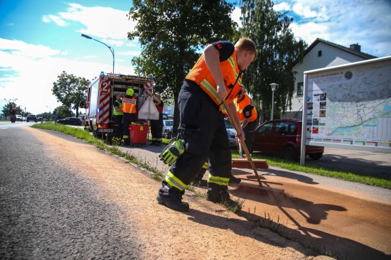 Bei einem Ölaustritt im Bereich einer Bushaltestelle stand die Feuerwehr Dienstagnachmittag in Marchtrenk (Bezirk Wels-Land) im Einsatz.