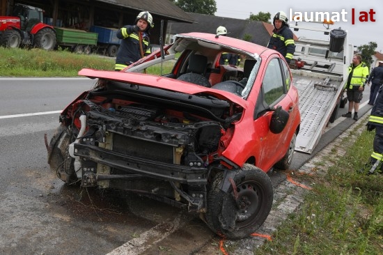 Die Lenkerin musste von der Feuerwehr aus dem Auto befreit werden. Die Frau war zum Glück nicht eingeklemmt sondern nur im Fahrzeug eingeschlossen. Die Einsatzkräfte entfernten die Windschutzscheibe und die Frau konnte das Auto so verlassen. Nach der Erstversorgung wurde sie ins Klinikum Grieskirchen eingeliefert. Die Feuerwehr unterstützte das Abschleppunternehmen bei den Aufräumarbeiten.