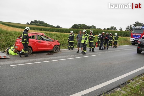 Person nach Verkehrsunfall auf Innviertler Straße in Grieskirchen von Feuerwehr aus Auto befreit