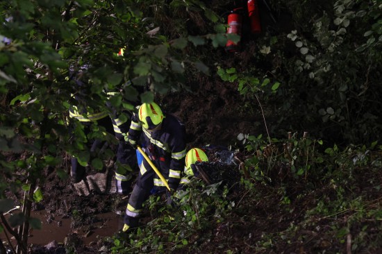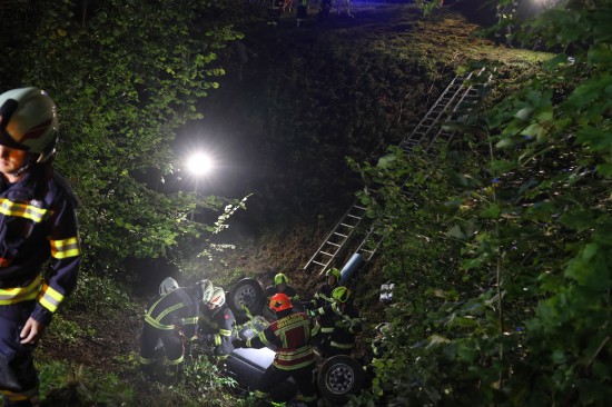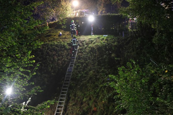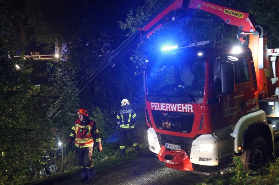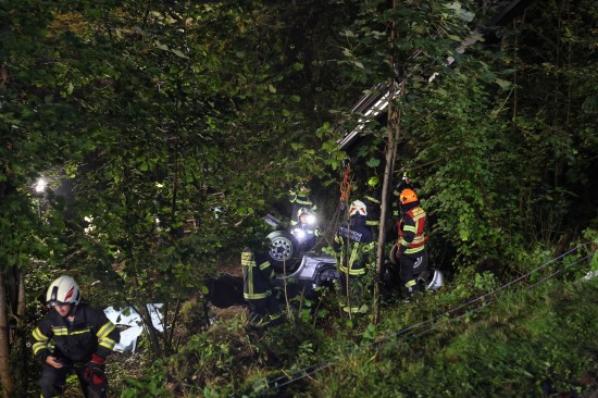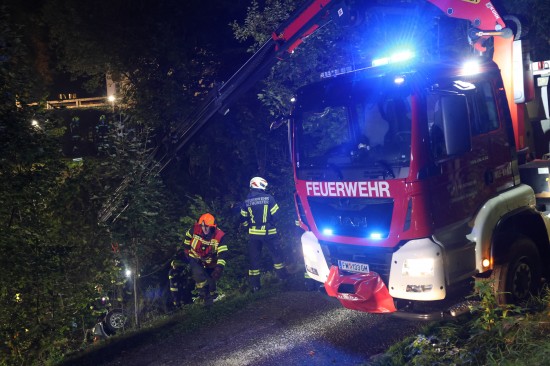 In Traunkirchen (Bezirk Gmunden) ist am Montagabend ein Auto verunfallt und in das tief abfallende Bachbett des Burgsteingrabens gestürzt. Der Lenker musste von den Einsatzkräften befreit werden.