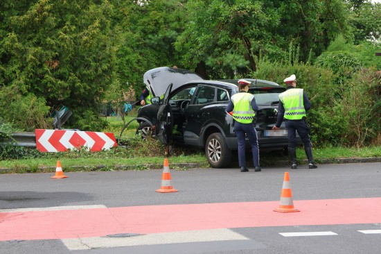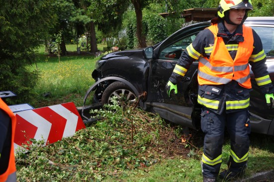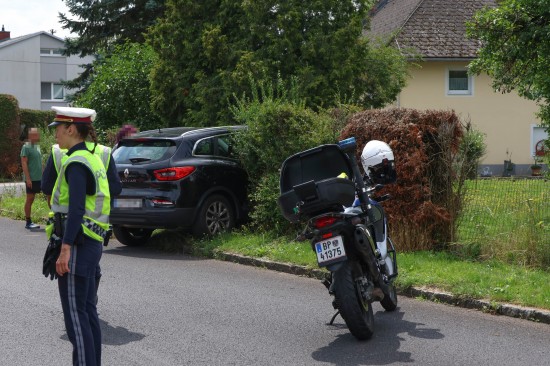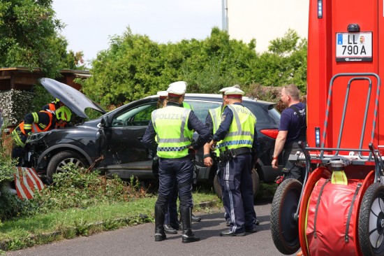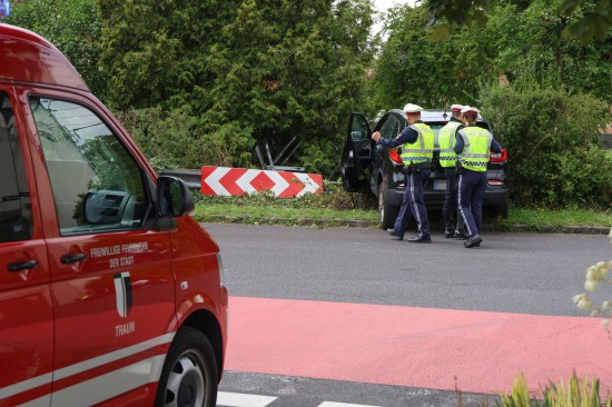 In Traun (Bezirk Linz-Land) ist Freitagvormittag ein PKW-Lenker mit seinem Fahrzeug über einen Kreuzungsbereich hinausgefahren und in einem angrenzenden Garten gelandet.