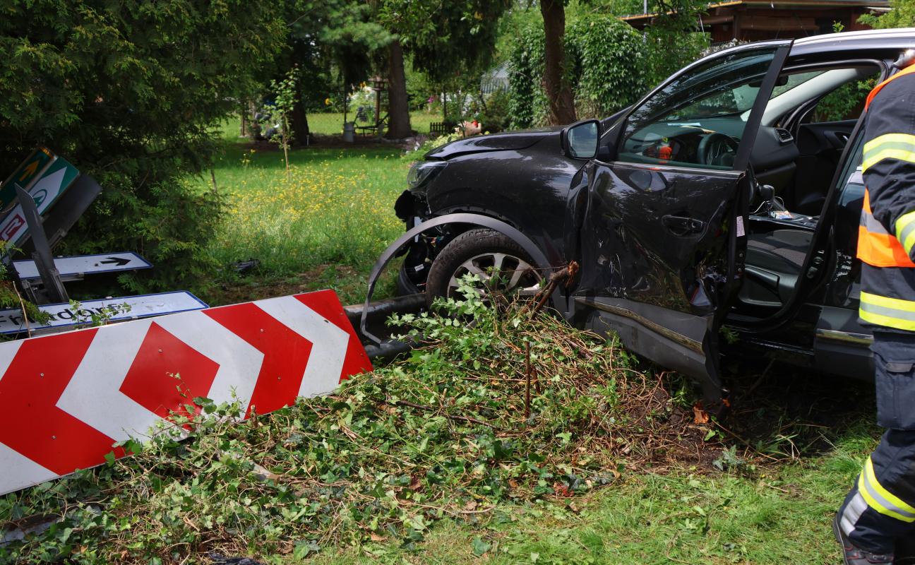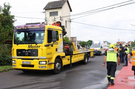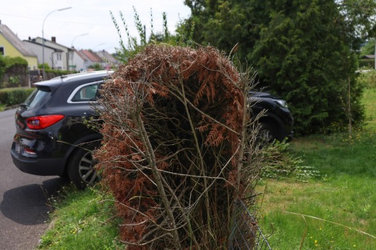 Der Unfall passierte Freitagvormittag im Kreuzungsbereich der Leebgutstraße mit der Trauner Straße in Traun. Ein Autolenker war offenbar auf der Trauner Straße unterwegs, als er am Steuer seines Autos einen medizinischen Notfall erlitt. Er wurde offenbar bewusstlos und fuhr durch den Kreuzungsbereich, kolldierte mit einer Leitschiene, einem Verkehrszeichen, einer Hecke und leicht mit einem Baum. Das Auto kam dann im dortigen Garten zum Stehen. Die Einsatzkräfte zweier Feuerwehren, Rettung und Notarzt sowie die Polizei wurden zur Personenrettung nach einem Verkehrsunfall alarmiert. Die Kräfte der Feuerwehr entfernten einen Steher, dann konnte die Fahrzeugtüre geöffnet und der Unfalllenker befreit werden. Er wurde notärztlich erstversorgt und anschließend mit dem Rettungsfahrzeug zur weiteren Abklärung in den Med Campus III des Kepler Universitätsklinikums nach Linz gebracht. Die Feuerwehr unterstützte das Abschleppunternehmen bei der Bergung des Unfallfahrzeuges.