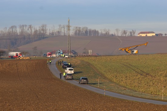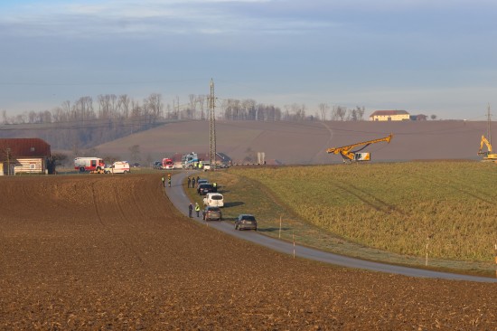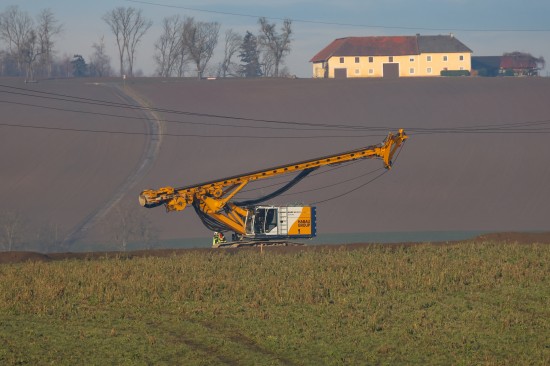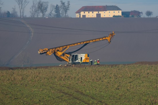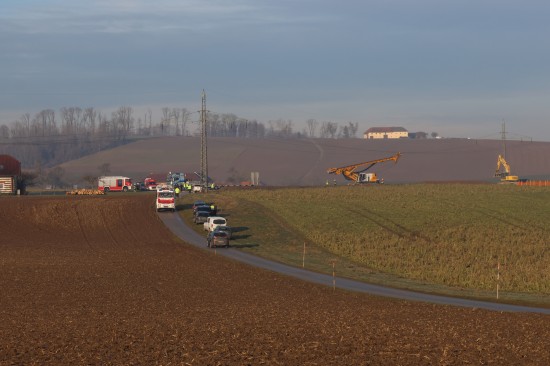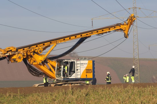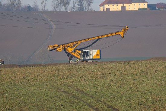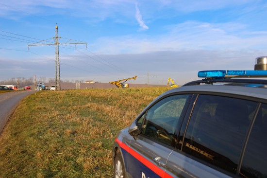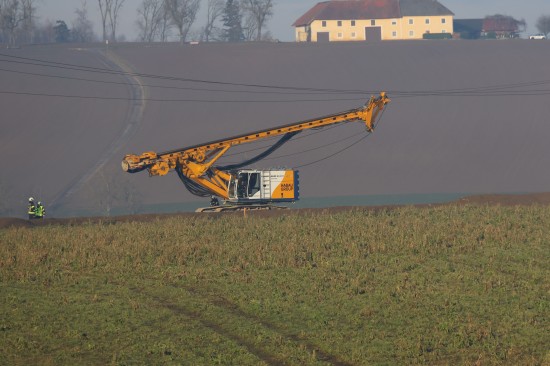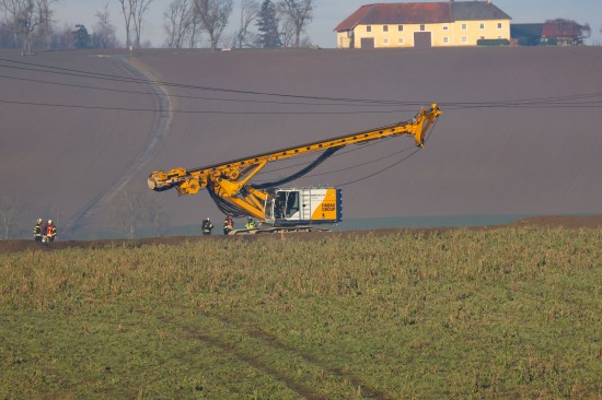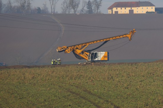 Personenrettung: Drehbohrgerät auf Baustelle in Enns in 110-kV-Hochspannungsleitung geraten
