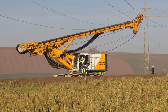 Enns. Ein Drehbohrgerät ist Montagvormittag in Enns (Bezirk Linz-Land) in eine Hochspannungsleitung geraten. Der Fahrer des Baugeräts kam unverletzt mit dem Schrecken davon.