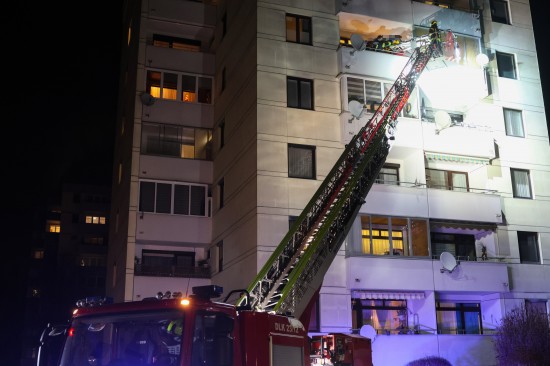 Die Einsatzkräfte mussten zur Unterstützung des Rettungsdienstes anrücken, um eine Person nach notärztlicher Erstversorgung in einer Mehrparteienhauswohnung möglichst patientenschonend mittels Drehleiter zu retten. Weil aus medizinischen Gründen ein Abtransport nur liegend möglich war, wurde die Person mittels Drehleiter vom Balkon heruntergehoben und dort dann an das Team des Rettungsfahrzeuges für den Weitertransport ins Klinikum übergeben.