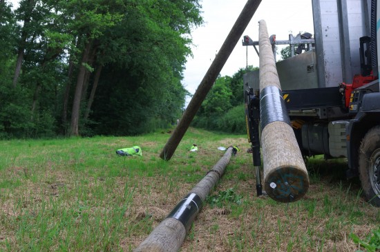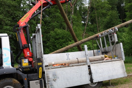 Personenrettung nach Arbeitsunfall beim Abladen von Strommasten in Aichkirchen