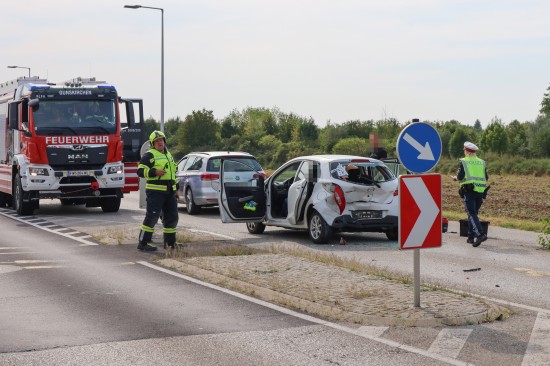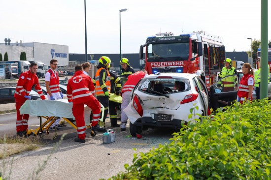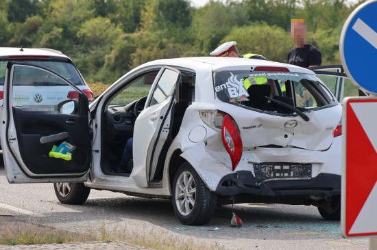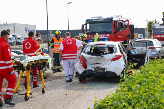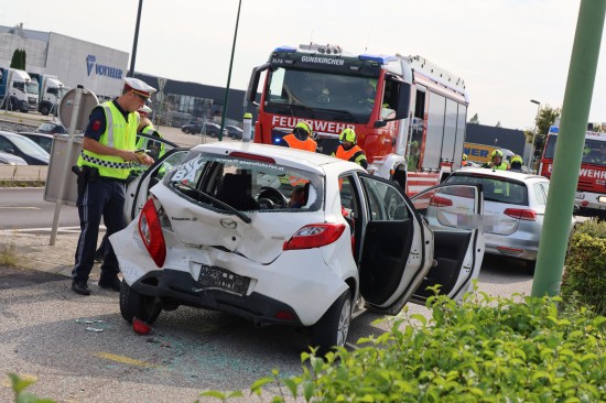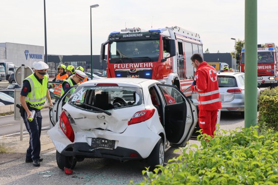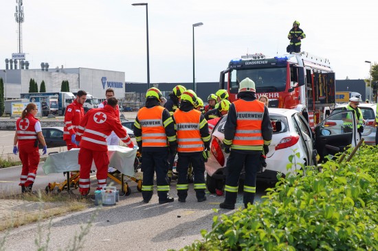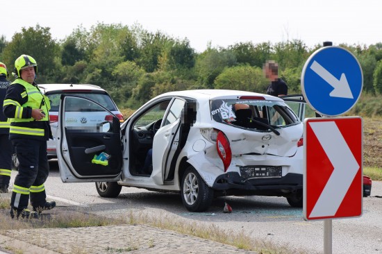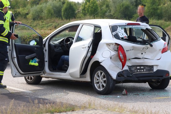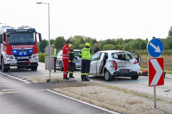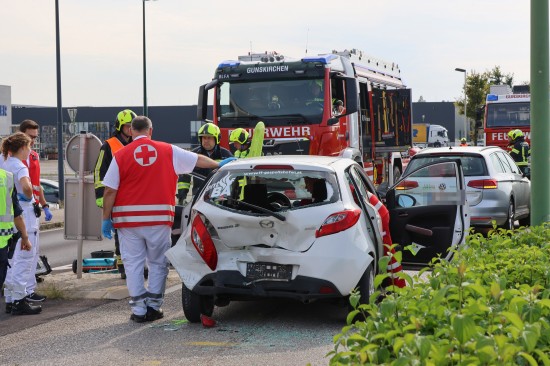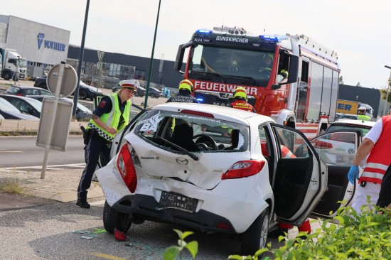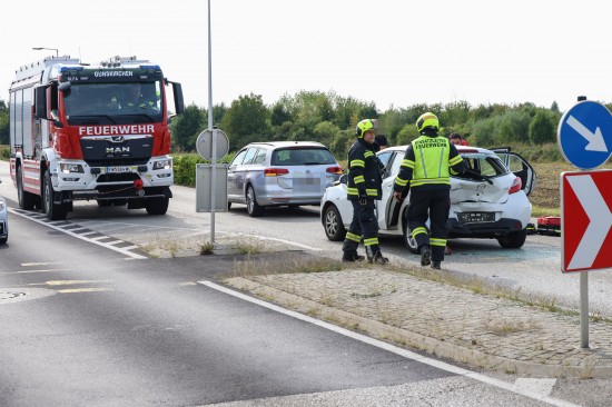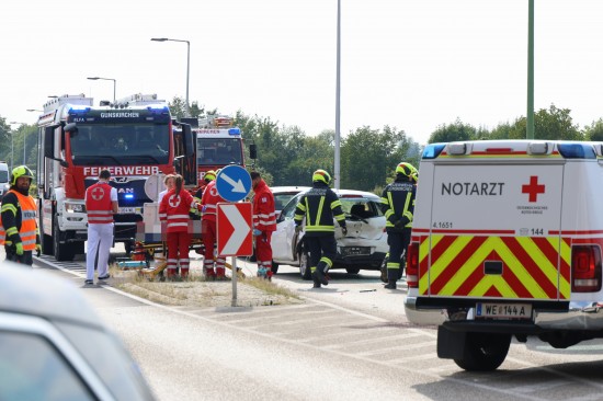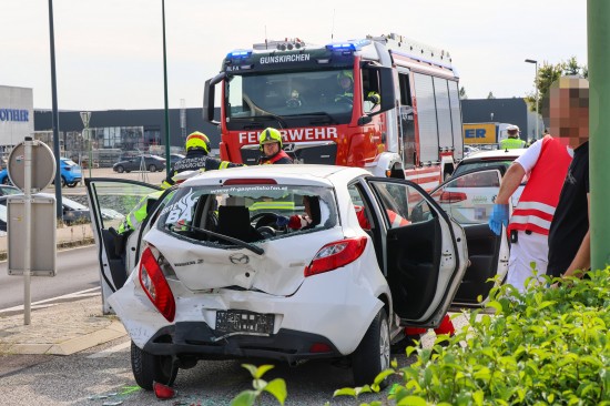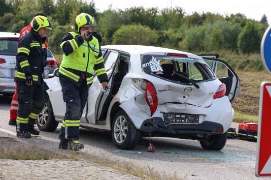 Personenrettung nach heftigem Auffahrunfall mit drei beteiligten Autos in Gunskirchen