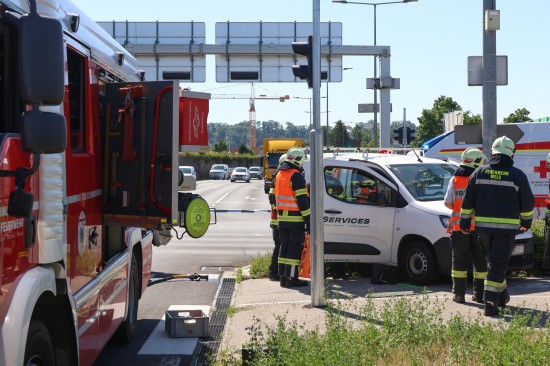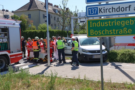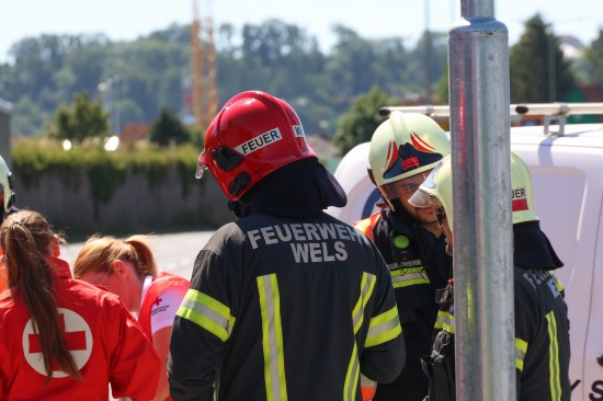 Der Unfall passierte im Kreuzungsbereich der B1 Wiener Straße, Hans-Sachs-Straße mit der B137 Innviertler Straße, Osttangente und dem Weiglweg im Welser Stadtteil Pernau. Die Einsatzkräfte der Feuerwehr, die Rettung, der Notarzt und die Polizei wurden am Vormittag zu einem schweren Verkehrsunfall mit eingeklemmter beziehungsweise eingeschlossener Person alarmiert. Im dortigen Kreuzungsbereich kam es aus noch unbekannten Gründen zur Kollision zweier Kleintransporter, wobei ein Fahrzeug dann in einer Verkehrsinsel zum Stillstand kam. Der Lenker musste von den Einsatzkräften möglichst patientenschonend aus dem Unfallfahrzeug befreit werden. Die Verletzten wurde nach der Erstversorgung durch Rettungsdienst und Notarzt ins Klinikum Wels gebracht. Die Feuerwehr sicherte die Unfallstelle ab. Die beiden beschädigten Fahrzeuge wurde dann vom verständigten Abschleppdienst geborgen.