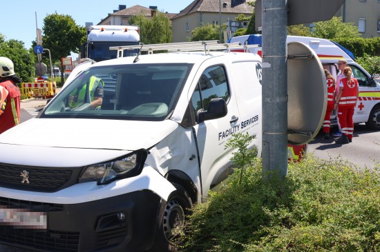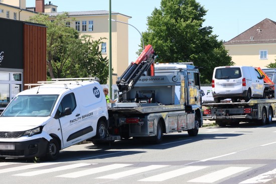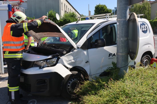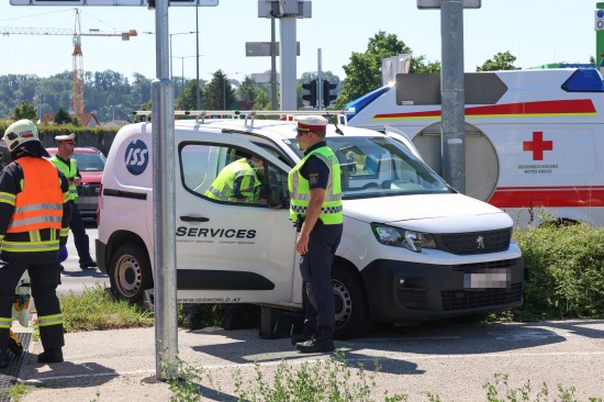 Wels. In Wels-Pernau musste Dienstagvormittag nach einem Kreuzungscrash zweier Kleintransporter eine der beteiligten Personen von der Feuerwehr aus dem Unfallfahrzeug befreit werden.