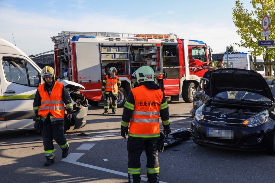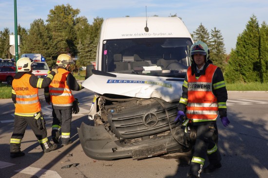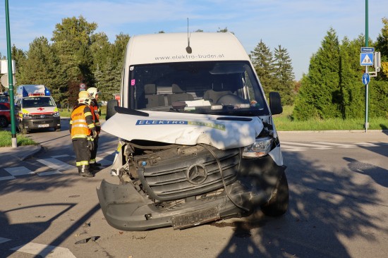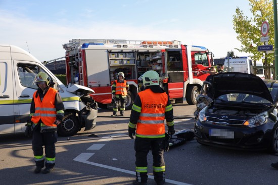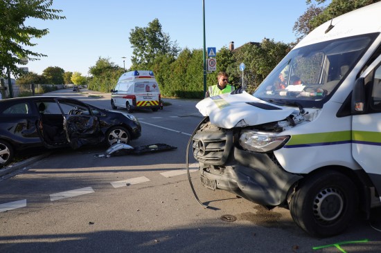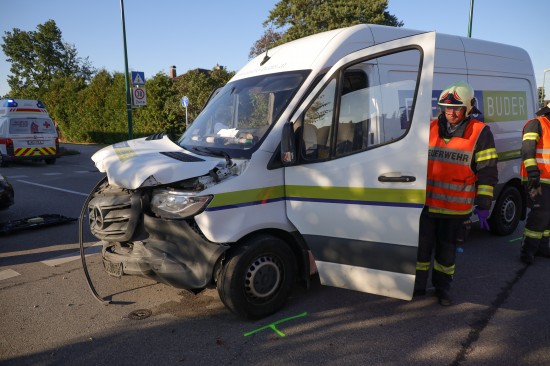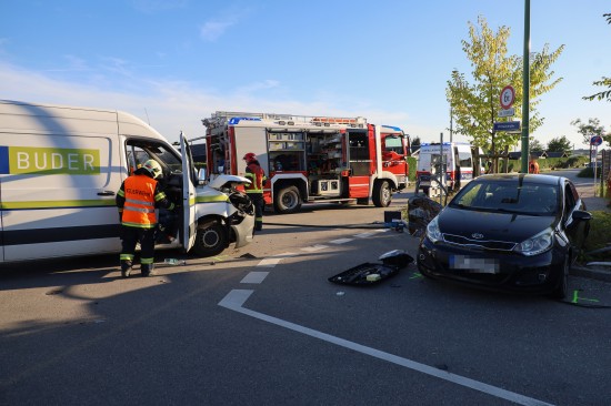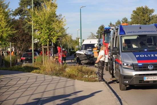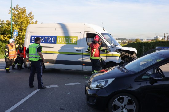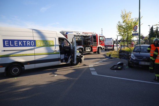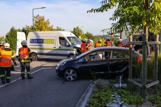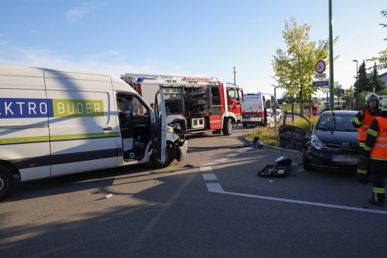 Ein schwerer Verkehrsunfall zwischen einem PKW und einem Kleintransporter hat sich Sonntagnachmittag in Wels-Vogelweide ereignet. Die Feuerwehr stand bei der Personenrettung im Einsatz.