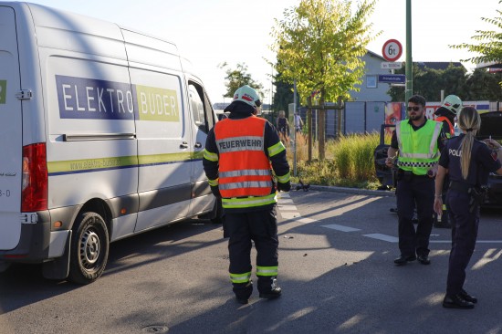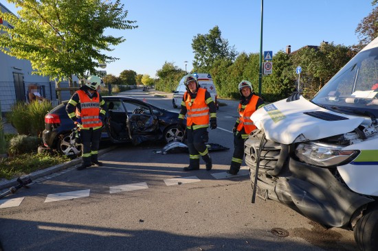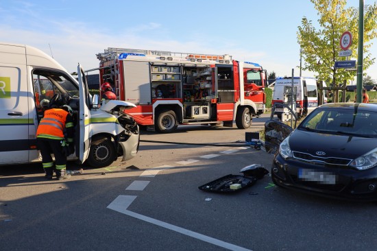 Wels. Ein schwerer Verkehrsunfall zwischen einem PKW und einem Kleintransporter hat sich Sonntagnachmittag in Wels-Vogelweide ereignet. Die Feuerwehr stand bei der Personenrettung im Einsatz.