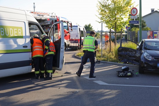 Personenrettung nach schwerem Crash zwischen Kleintransporter und PKW in Wels-Vogelweide