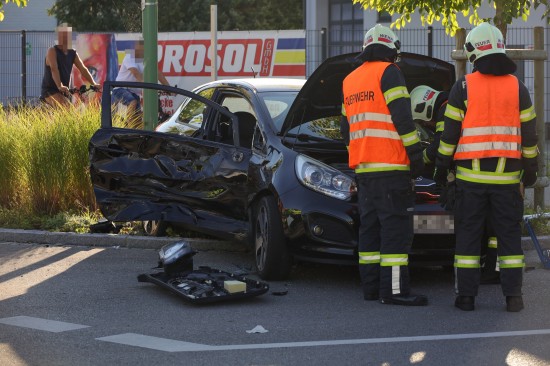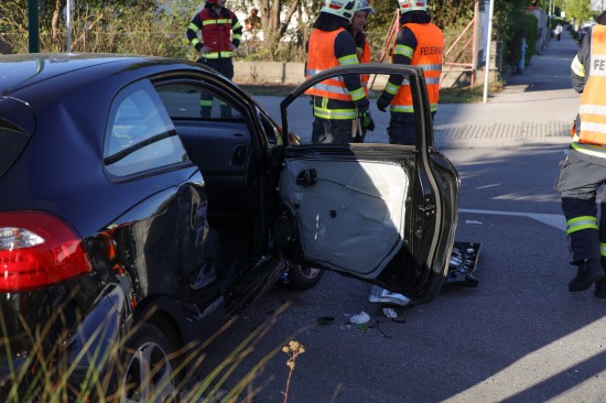 Der Unfall passierte am späteren Sonntagnachmittag im Kreuzungsbereich der Albrechtstraße mit der Primelstraße im Welser Stadtteil Vogelweide. Aus noch unbekannten Gründen kam es im dortigen Kreuzungsbereich - eine Kreuzung mit besonderem Vorrangverlauf - zu einem Crash zwischen einem Kleintransporter und einen PKW. Die Feuerwehr wurde zur Personenrettung alarmiert. Der PKW kam direkt bei einem Verkehrsschild zum Stillstand, sodass ein Aussteigen nicht mehr möglich war. Das Verkehrszeichen wurde weggebogen und die andere Türe konnte mit etwas Kraftaufwand dann ebenfalls geöffnet werden. Die Unfallbeteiligten wurden vom Rettungsdienst betreut beziehungsweise versorgt. Die Feuerwehr sicherte nach der Personenrettung die Unfallstelle ab und unterstützte bei den Aufräumarbeiten.