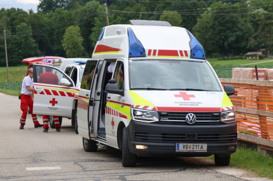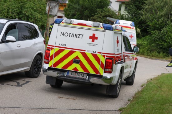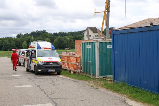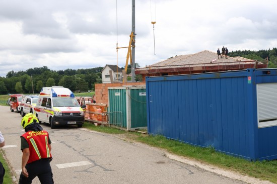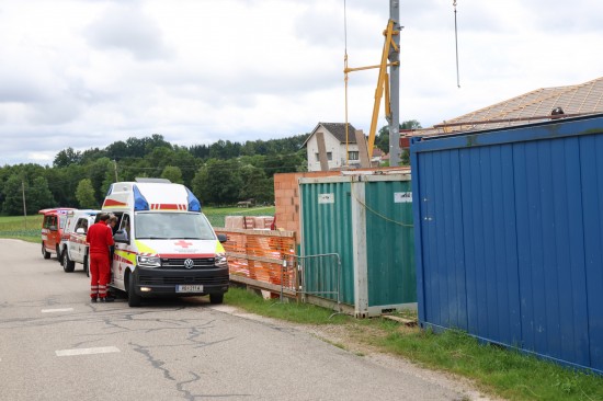 In Pitzenberg (Bezirk Vöcklabruck) standen die Einsatzkräfte dreier Feuerwehren am Mittwochvormittag bei einer Personenrettung auf einer Baustelle im Einsatz.