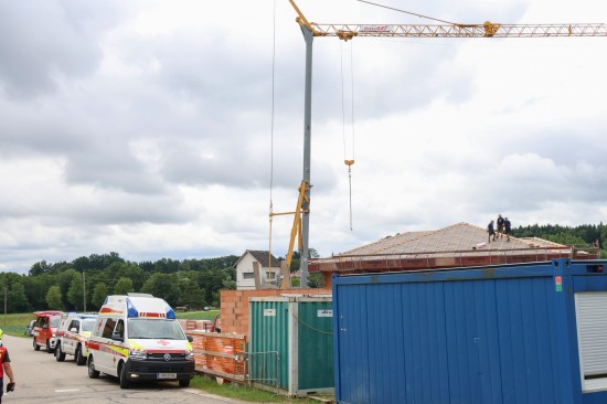 Personenrettung: Patient auf Baustelle in Pitzenberg durch Einsatzkräfte vom Dach gerettet