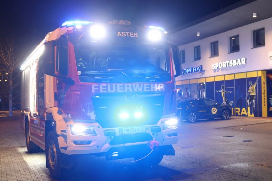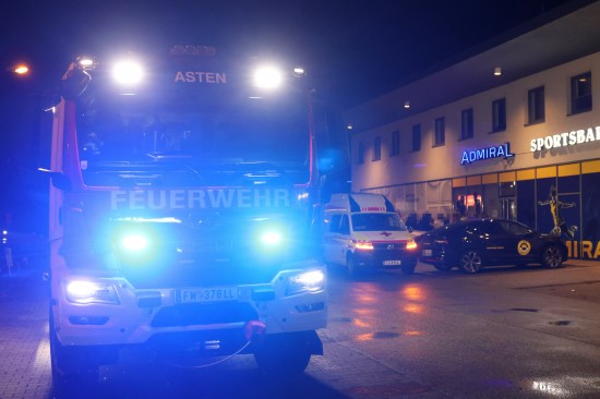 Die Einsatzkräfte der Feuerwehr wurden mit dem Einsatzbegriff "Person in misslicher Lage" zu einem Wettlokal nach Asten alarmiert. Nach einem Sturz war dort eine Person im Bereich der Bar eingeklemmt, sodass die Rettung die Unterstützung der Feuerwehr benötigte. Nach dem Befreien der Person aus der misslichen Lage wurde der Verletzte mit der Rettung zur weiteren Versorgung ins Krankenhaus gebracht.