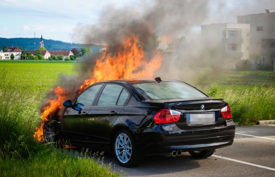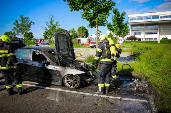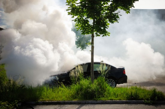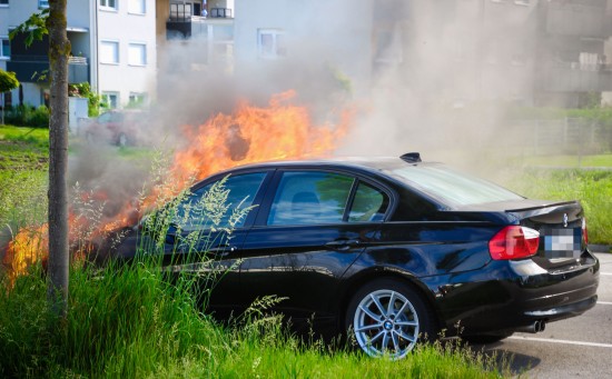 PKW-Brand auf einem Parkplatz in Braunau am Inn