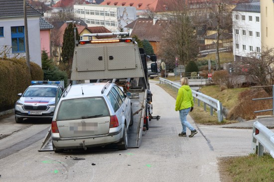 In Kirchdorf an der Krems sind am Samstagvormittag auf der L1324 Schiefer Straße zwei Fahrzeuge kollidiert. Zwei Personen wurden dabei verletzt.