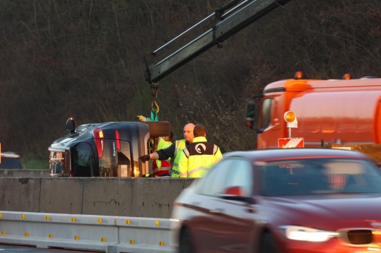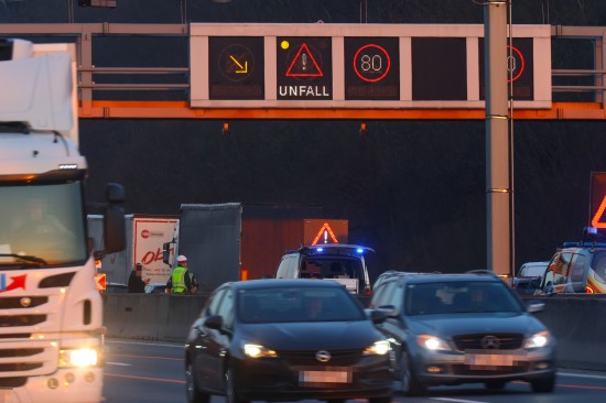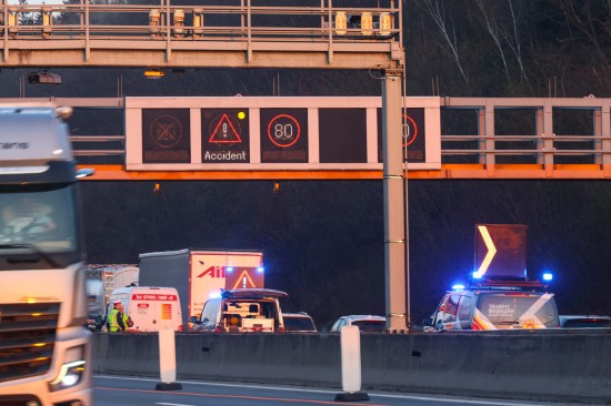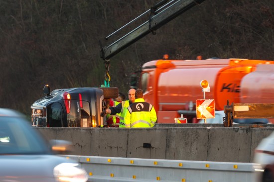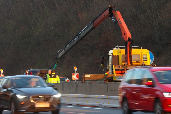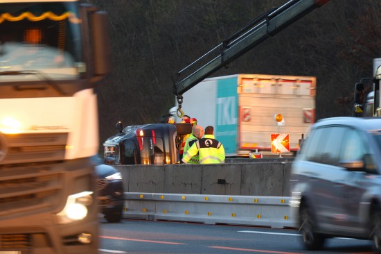 PKW in Seitenlage: Auto bei Verkehrsunfall auf Westautobahn in Linz-Ebelsberg umgekippt