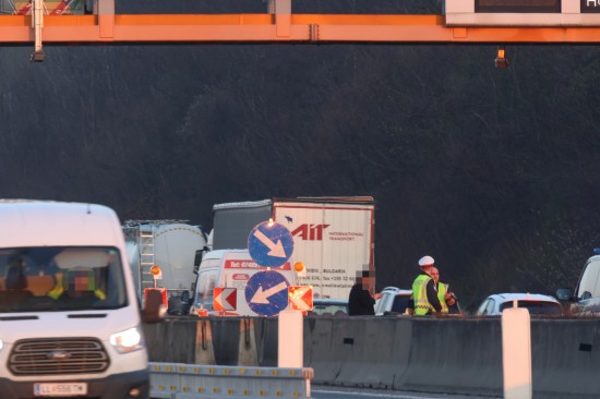 Ein Verkehrsunfall auf der A1 Westautobahn bei Linz-Ebelsberg hat Donnerstagfrüh für umfangreiche Staus gesorgt. Ein PKW ist im Bereich einer Fahrstreifenverschwenkung umgestürzt.
