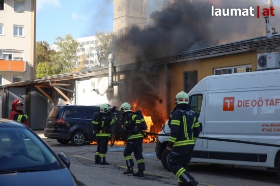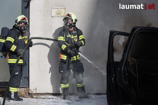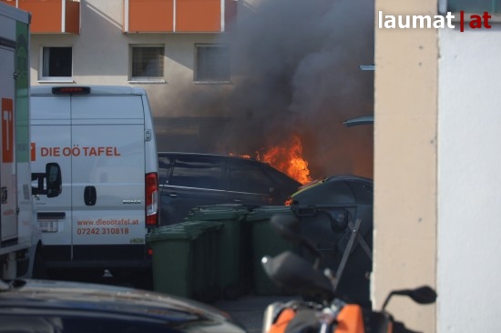 Wels. Ein PKW ist Samstagmittag auf dem Parkplatz hinter einem Gebäude am Flotzingerplatz in Wels-Neustadt in Flammen aufgegangen. Im weiteren Verlauf des Einsatzes musste noch eine Person gerettet werden.